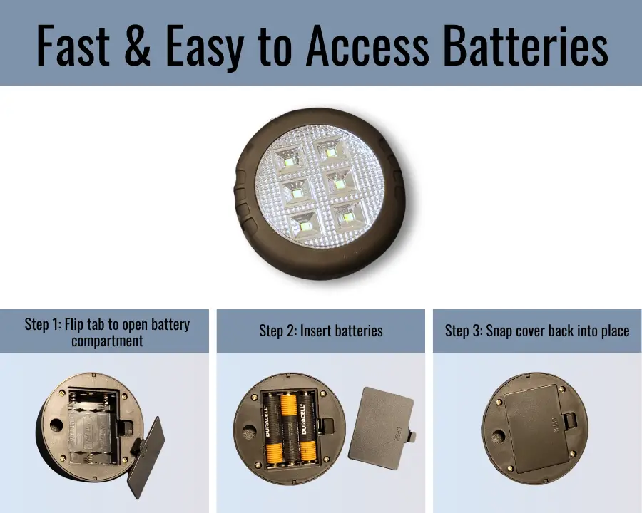 Versatile puck light with powerful SMD lighting makes it easy for you to spotlight just the right area of your ice sculpture. This redesigned product now includes an easy-access cover to replace batteries quickly and easily.